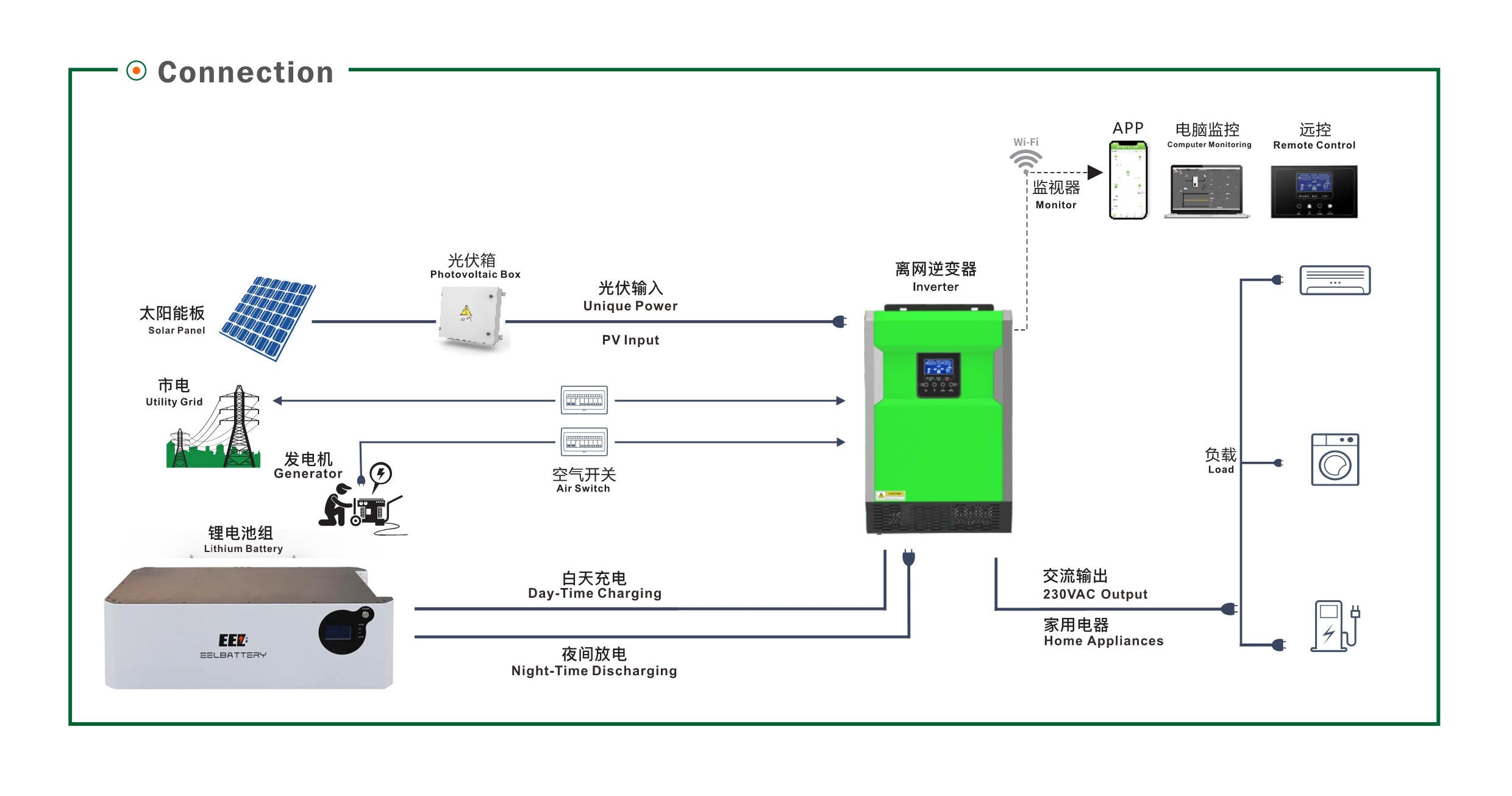 A: The battery system can be connected to a PC, and you can set and manage the whole system on your computer.