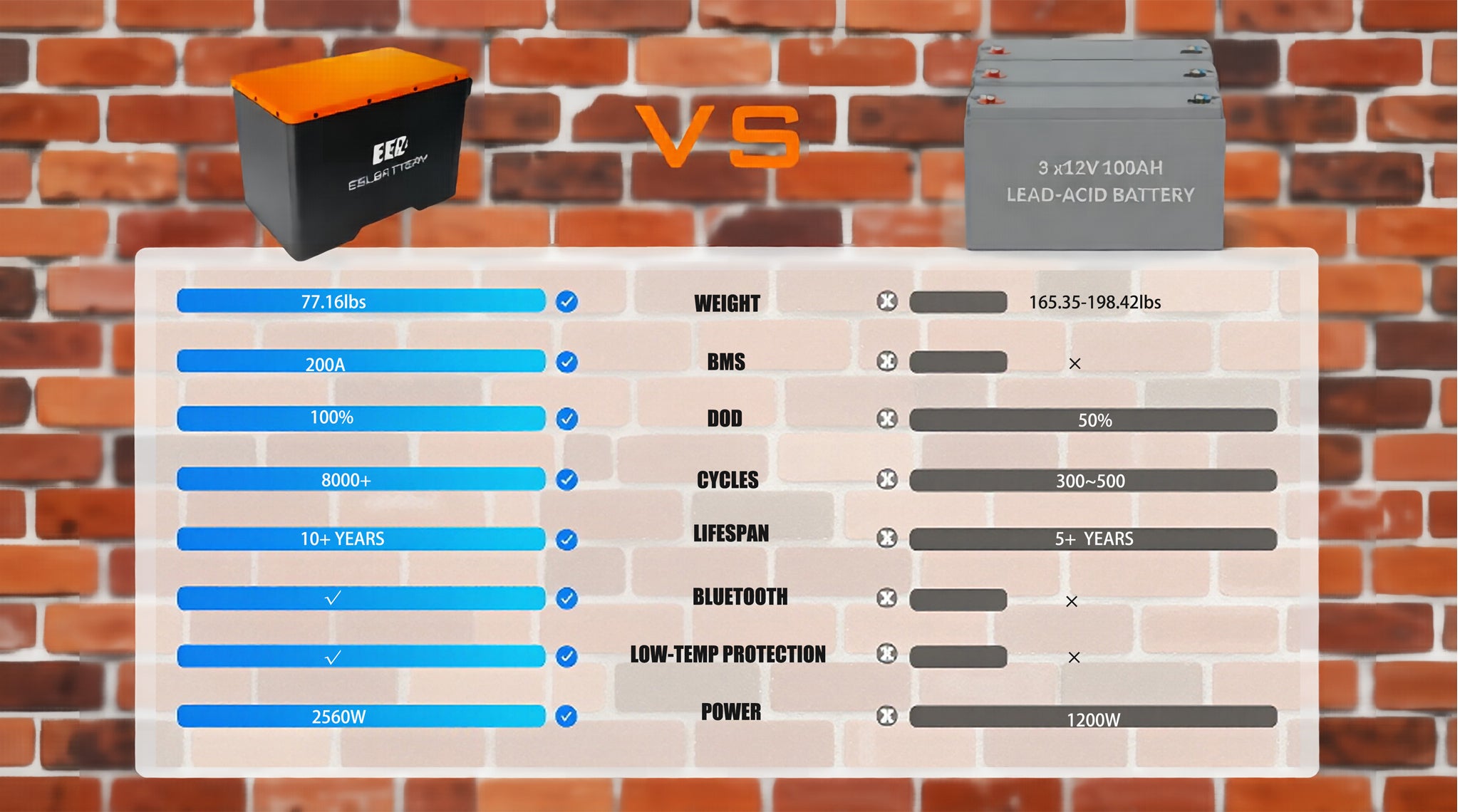EEL BATTERY's flagship 12V 314Ah Mini Bluetooth Lithium Battery redefines portable power with its space-saving dimensions (L 382 × W 221 × H 252 mm) and an ultralight body weighing just 35 kg. It delivers 2560 watts of output power and 4019 watt-hours of capacity, far outperforming traditional setups—replacing three bulky lead-acid batteries (weighing up to 87 kg) that provide only 1800 watts/1800 watt-hours. This represents a smarter and more efficient energy solution for the modern user.