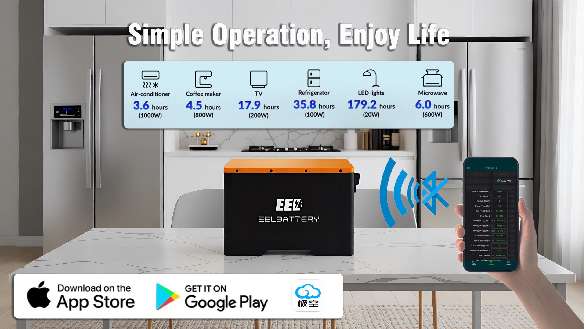 Take full control of your power system in just three steps: install the JK BMS app, detect your Bluetooth batteries, and pair them through the app interface. The app is easy to download—scan the provided QR code or search for "JK BMS" directly on Google Play or the Apple App Store.